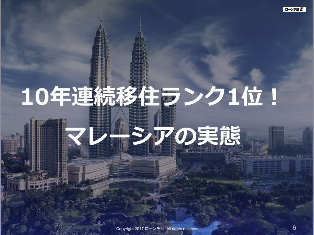 マレーシアは、財団法人ロングステイ財団調査で11年に渡りタイ・ハワイ・オーストラリア・台湾といった人気国を抑えて、住みたい国No.1に選ばれています。